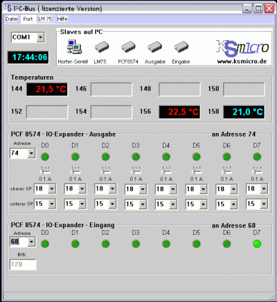 Auf der Homepage gibt es auch ein Freeware-Programm, welches zur Laufzeit temperaturabhängig bis zu 64 digitale Ausgänge steuert und bis zu 64 digitale Eingänge überwacht.