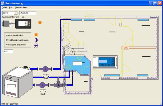 und mittelständische Unternehmen. Das Shareware-Programm "I²C-Bus-Commanderr" kann auf dieser Seite heruntergeladen werden. Die Software ermöglicht eine einfache Temperatursteuerung vom PC aus. Selbstverständlich kann man über einen Remote-Desktop die Software sogar über das Internet steuern. Schöne Aussichten von unterwegs mal eben etwas einschalten oder abzuschalten...Hier ein Screenshot von der neuen Grafischen Heizungssteuerung.