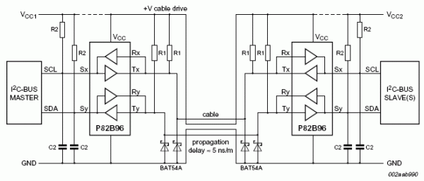 Hier die Pin-Belegung des I2C-Buffer-Chips P82B96.