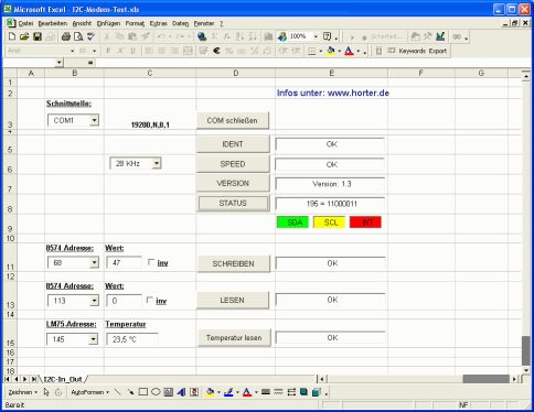 'werden, das I2C-Modem an der 'RS232 zu erkennen.