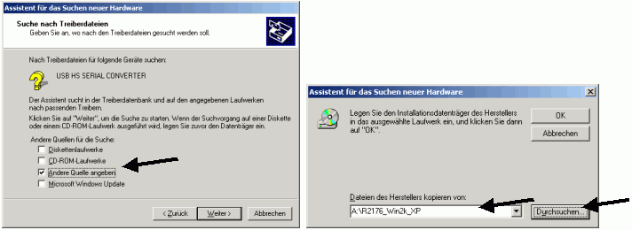 So installieren Sie den USB-Konverter für SIMATIC STEP 51. Treiber installieren Bei der Installation bitte den Treiber von der beigelegten Diskette verwenden Unter WIN2000 muss bei der Installation