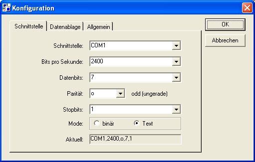 Hier nehmen Sie die Einstellungen der COM-Schnittstelle vor, mit den