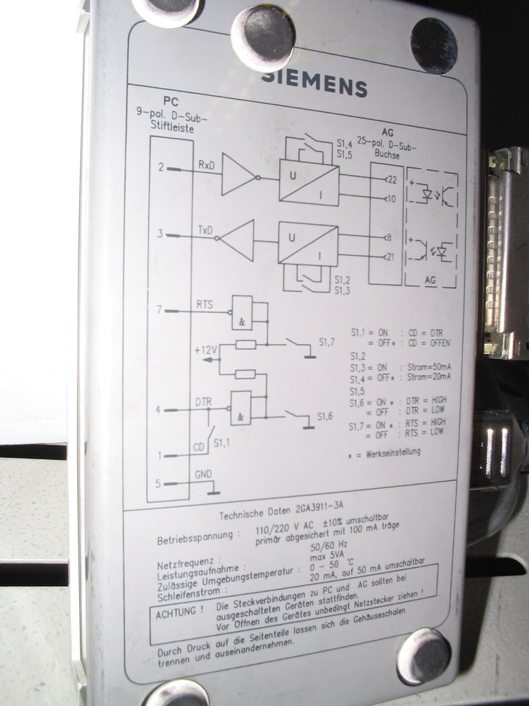 V24-TTY Schnittstelle auch Köster-Box genannt. (2GA3911-3A)